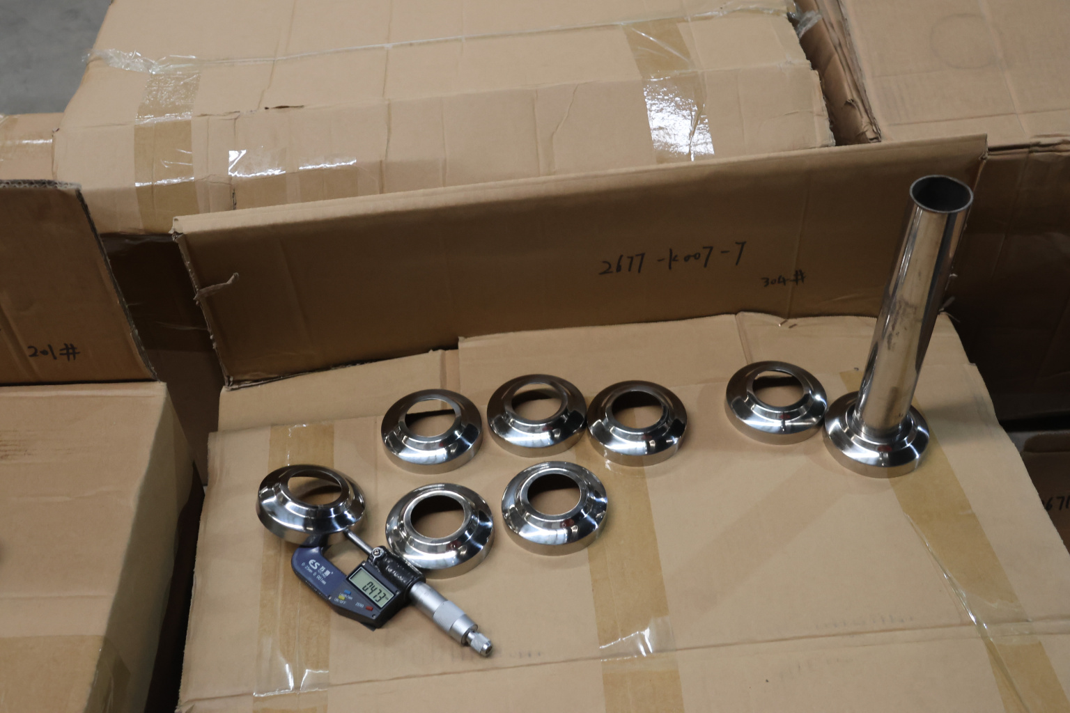 Низ стойки фигурный диаметром 38.1, Ø78х0.5 мм. Деталь полированная. Марка стали -  AISI 304 #400