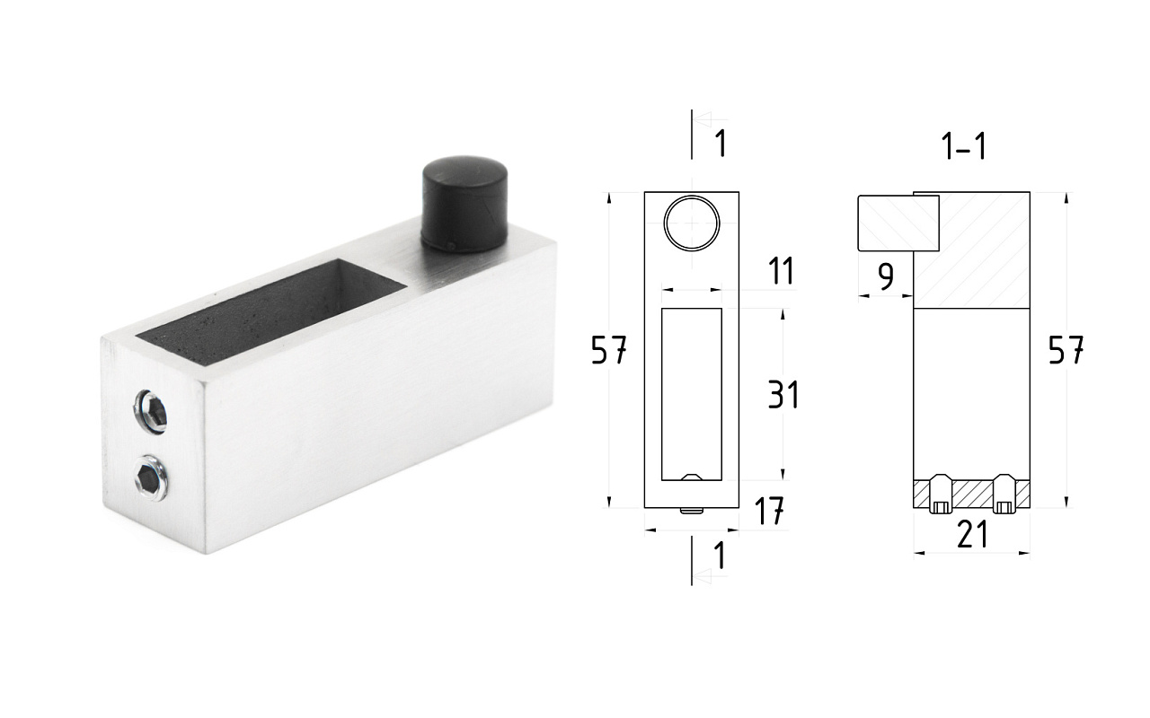 Направляющая для стеклянной двери, нержавеющая сталь AISI 304, шлифованная t834 SSS