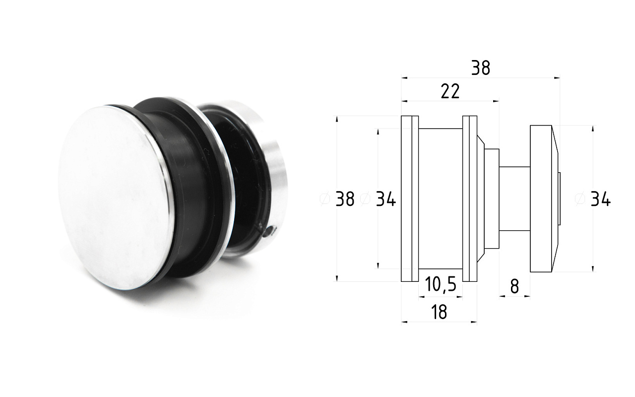 ролик (2 шт.), крепеж стекла к трубе (2 шт.), крепеж направляющая (2 шт.), напольная направляющая (1 шт.), торцевое крепление трубы к стене (2 шт.), стопор (2 шт.), дверная ручка (1 шт.)