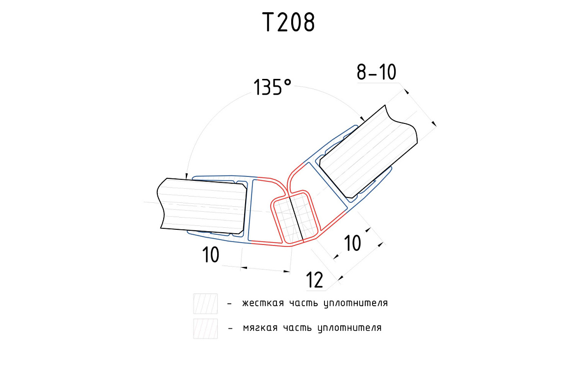 Комплект уплотнителей для стекла 8мм (2 шт.), стекло-стекло, с магнитом 135°, 2,2 м.черный непрозрачный t208 BL-U