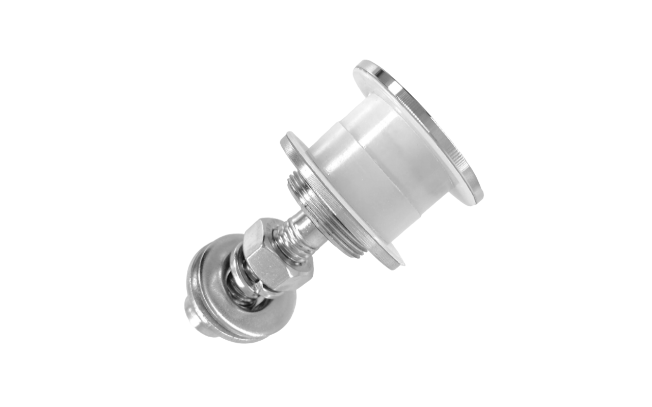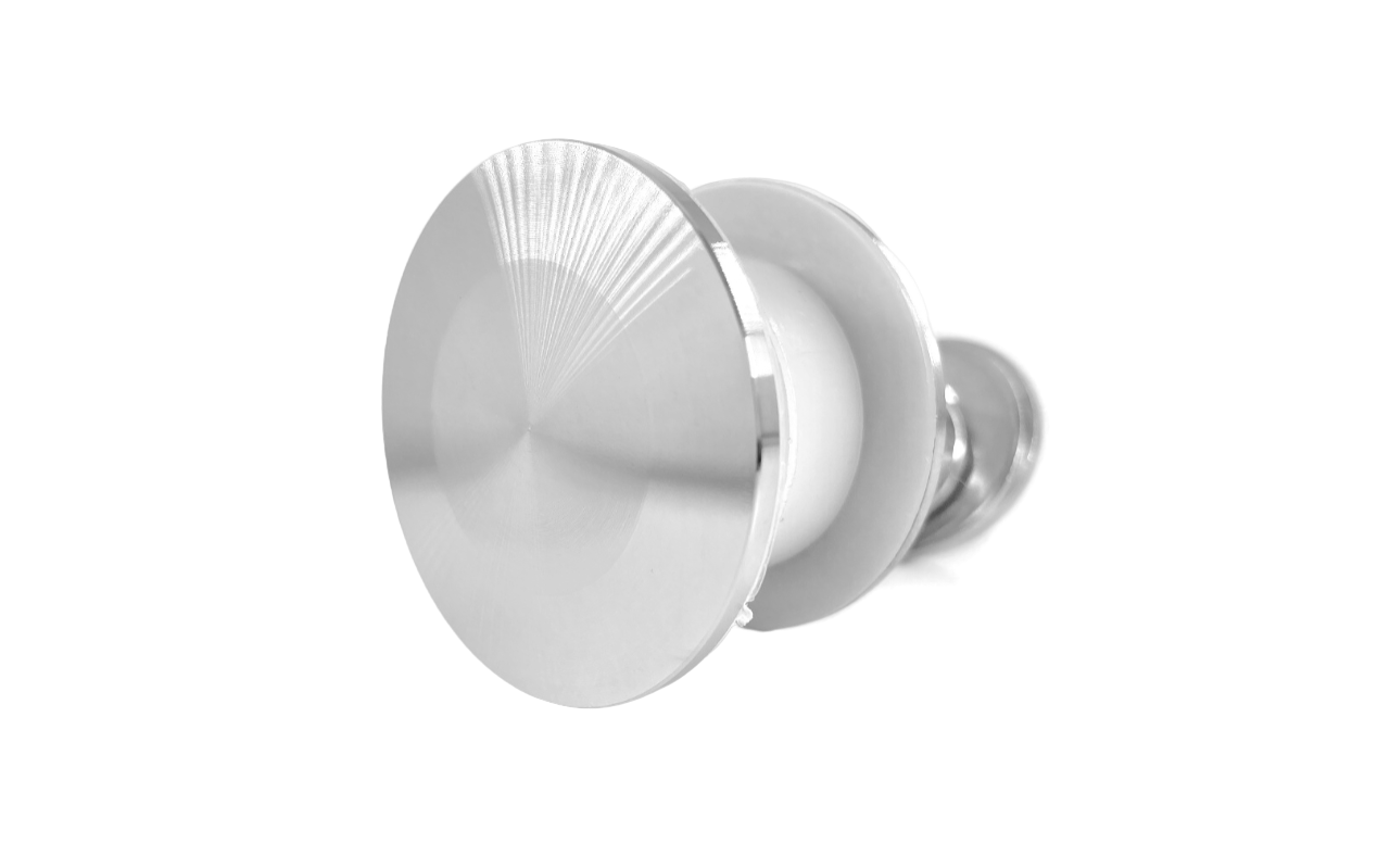 Рутель (стеклодержатель) для вантового крепления козырьков регулируемый разборный под стекло от 10 до 26 мм, полированный, диаметр внешнего кольца 50мм, шпилька М14х2мм AISI316 k274-3