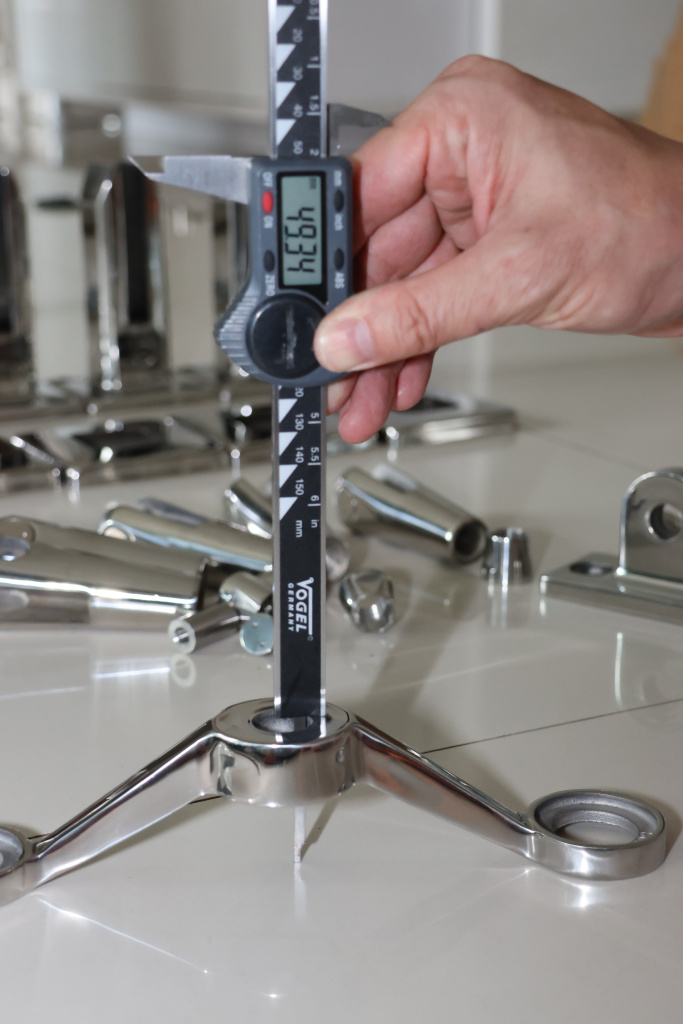 При установке спайдерной системы для крепления стекла используют рутели, которые после фиксации стекла крепятся к спайдерам. При изготовлении спайдеров предъявляют высокие требования к материалу, благодаря чему спайдер отвечает высокой механической прочности и антикоррозийной стойкости. Конструкция изготовлена так, что нагрузка распределяется равномерно, а запас прочности гарантирует надежность и безопасность всей конструкции. Благодаря использованию шарнирного рутеля  k274,  k634,  k364в спайдерной системе нивелируется объемное расширение стекла при изменении температуры.