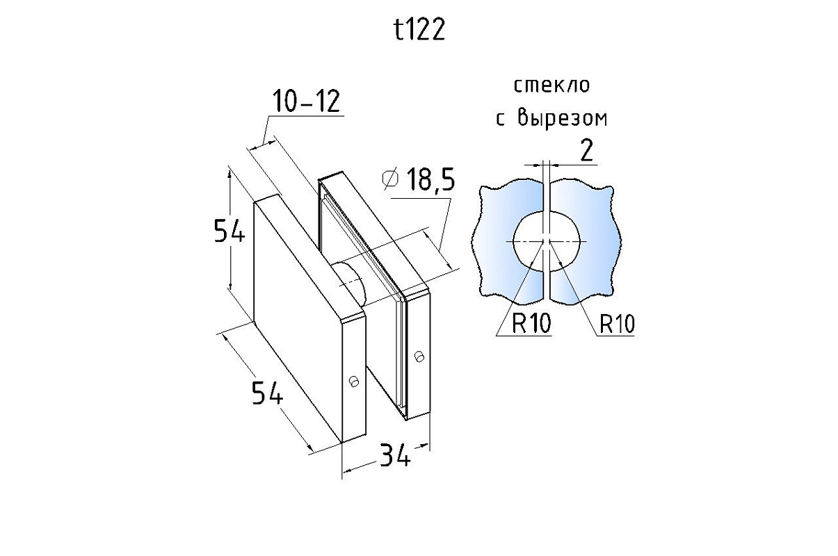 Коннектор стекло-стекло 53х53, шлифованный t122 SSS