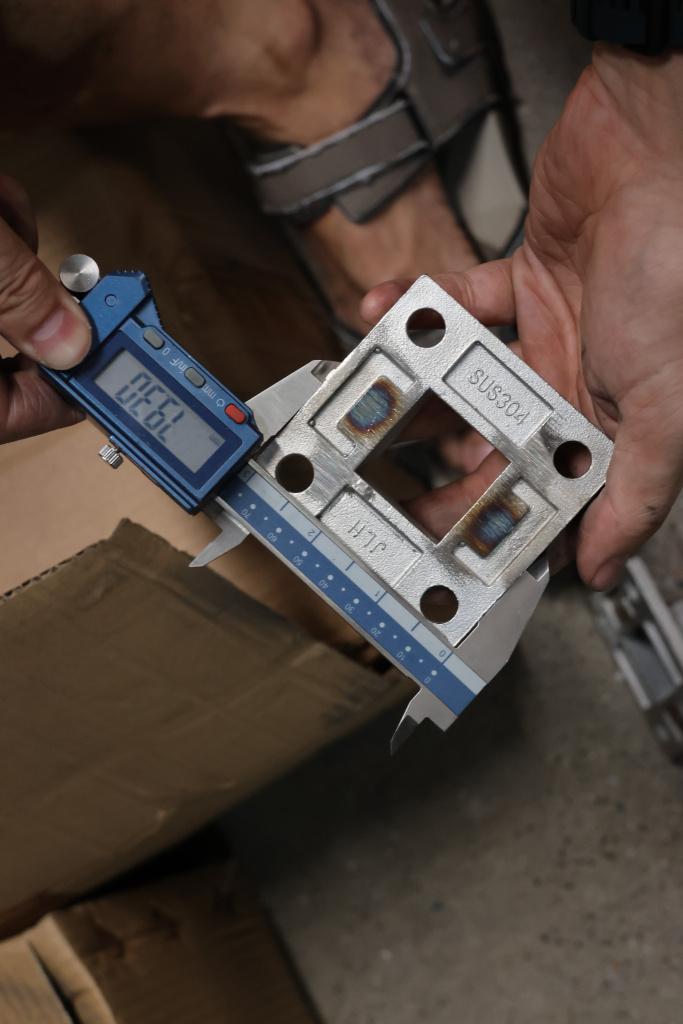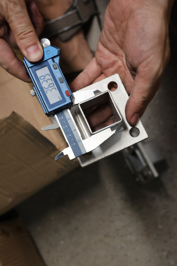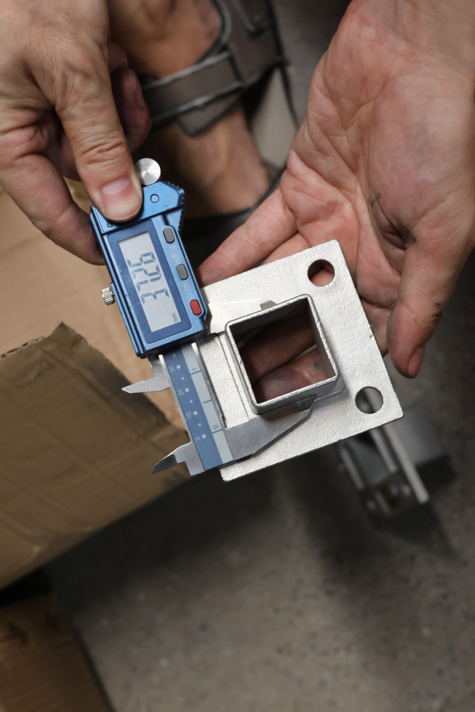 Фланец для трубы 40х40 мм с четырьмя отверстиями. Деталь литая, шлифованная, закладная под стойку. Марка стали - AISI 304