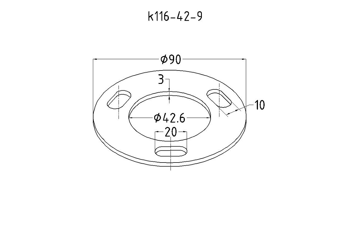 Фланец стойки 42/90 х 5 (4,3) х AISI 316 #200 3 отв х М10 х 20 k116-42-6
