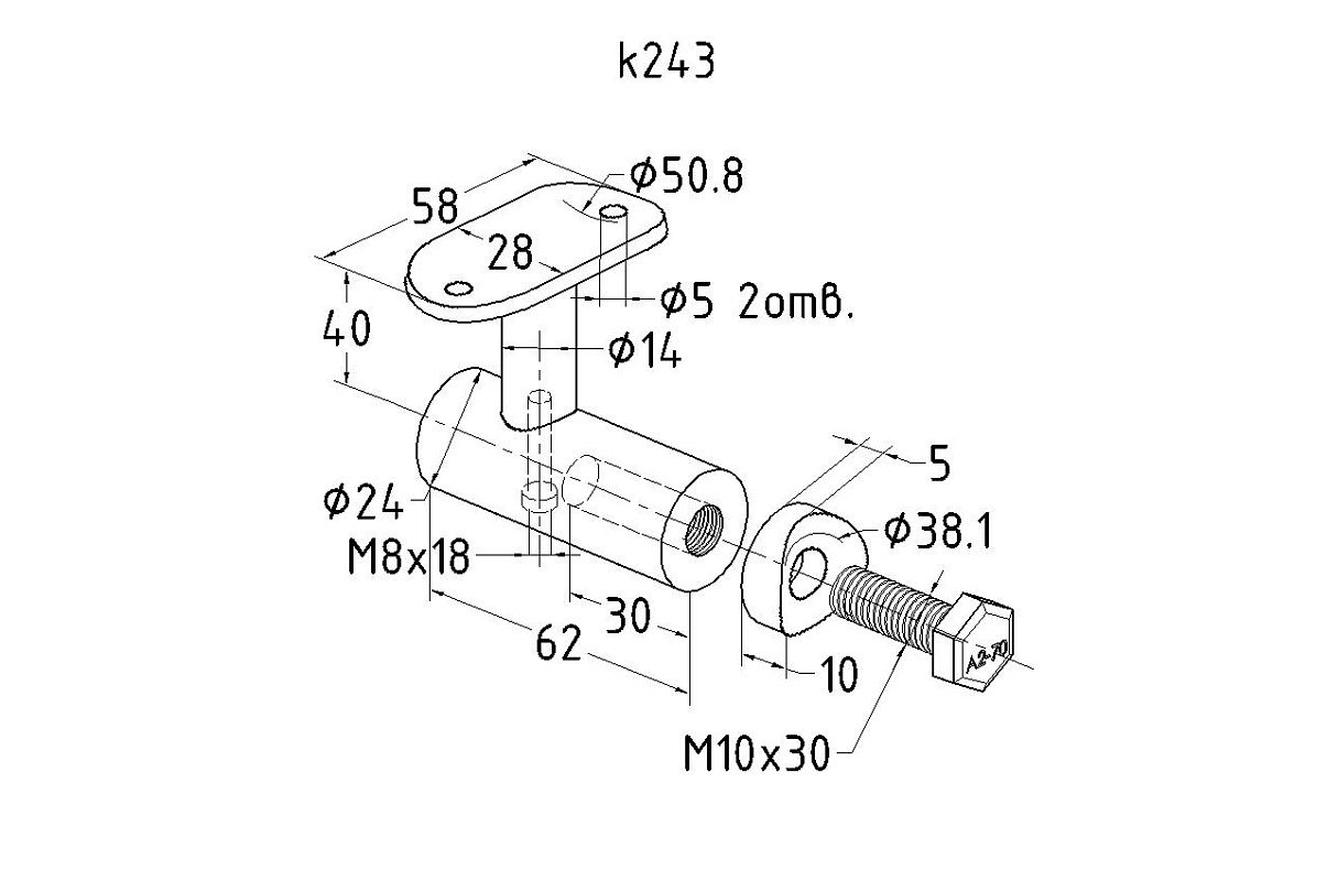 Держатель поручня к стойке Ø38.1 мм, с ложементом для трубы Ø50.8 мм полированный, литой (AISI 304) k243