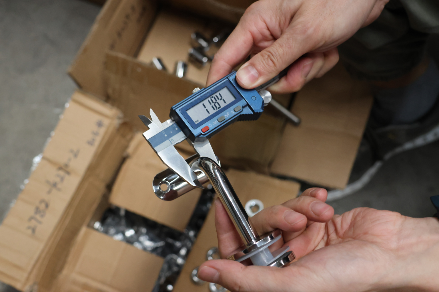 Для установки бокового держателя в стекле сверлится отверстие Ø17 мм, затем пристенок фиксируется затяжной гайкой в торце фланца. А сам поручень приваривается к загнутому наконечнику фитинга.
