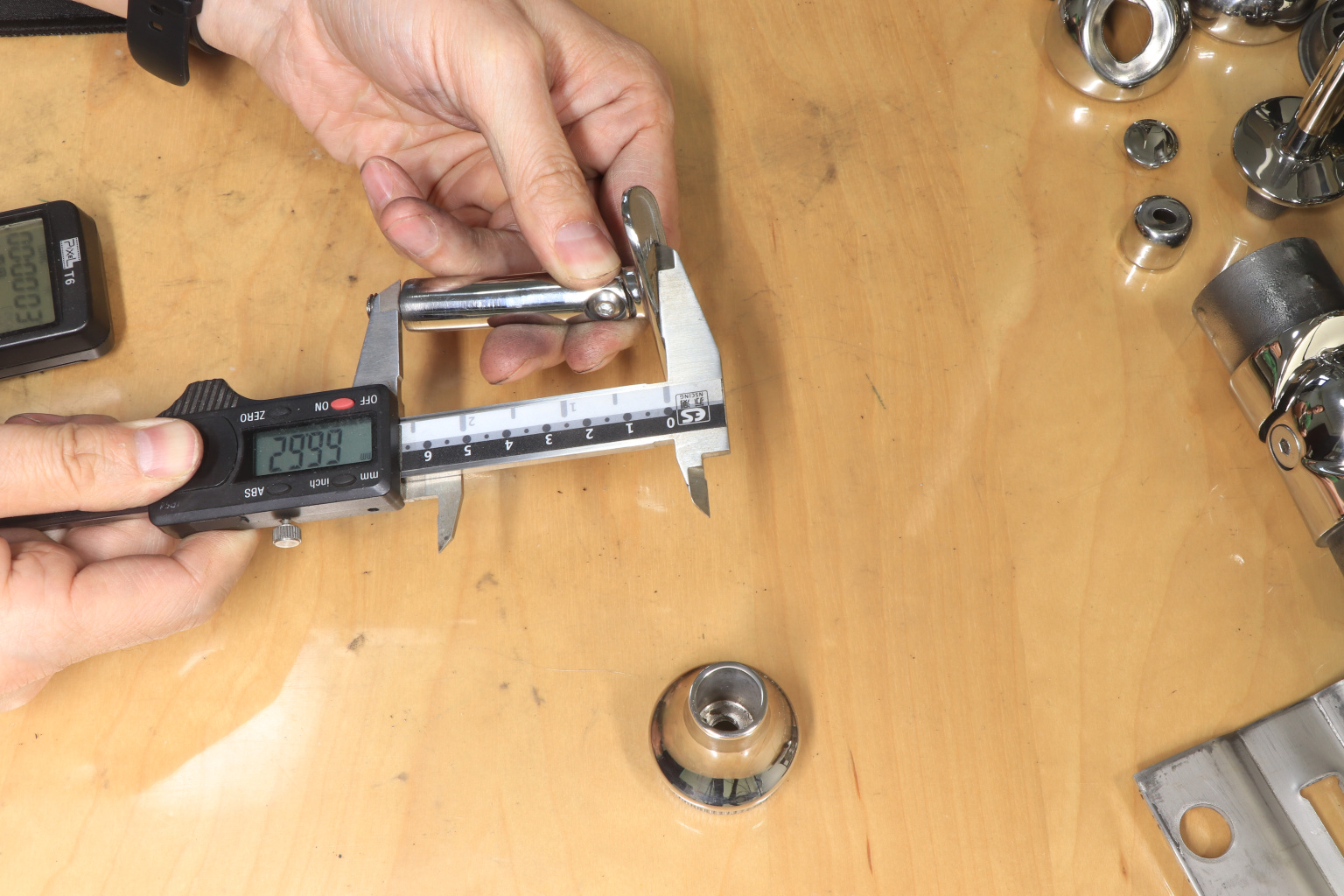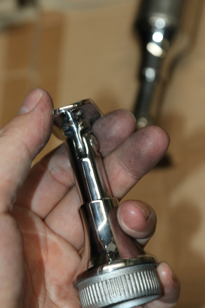 Наконечник регулируемый по высоте на стойку Ø38.1х1.5 мм, с регулируемым ложементом под поручень Ø50.8 мм. Деталь литая, полированная, нержавеющая. Марка детали - AISI 304