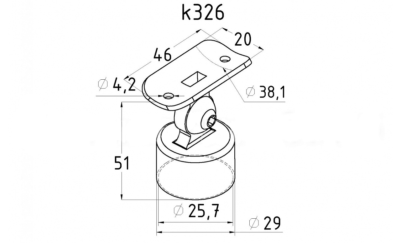 k326 наконечник на стойку шаровый, наружный Ø25.4 мм, с ложементом под поручень Ø38.1 мм, шарнирный, регулируемый, полированный (aisi 304)