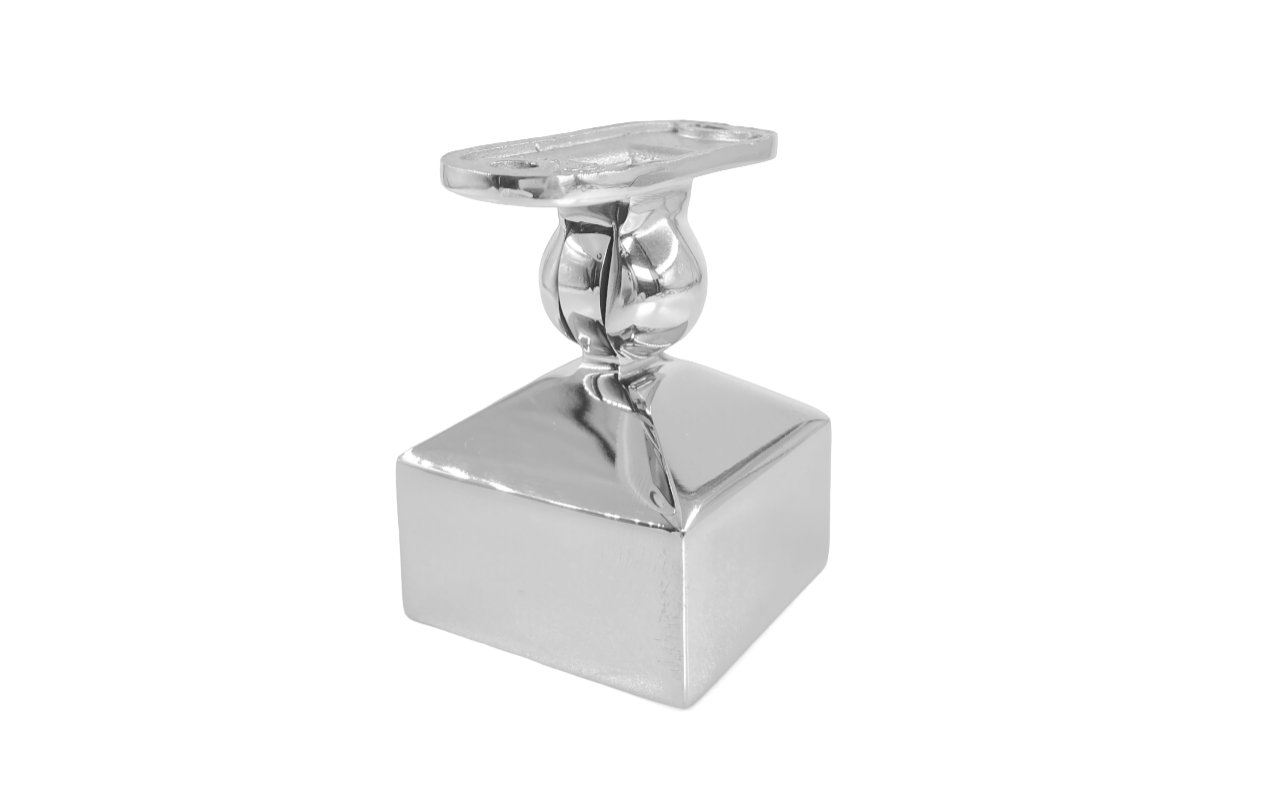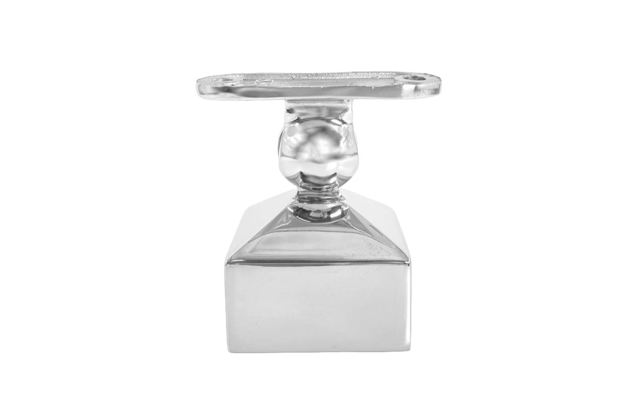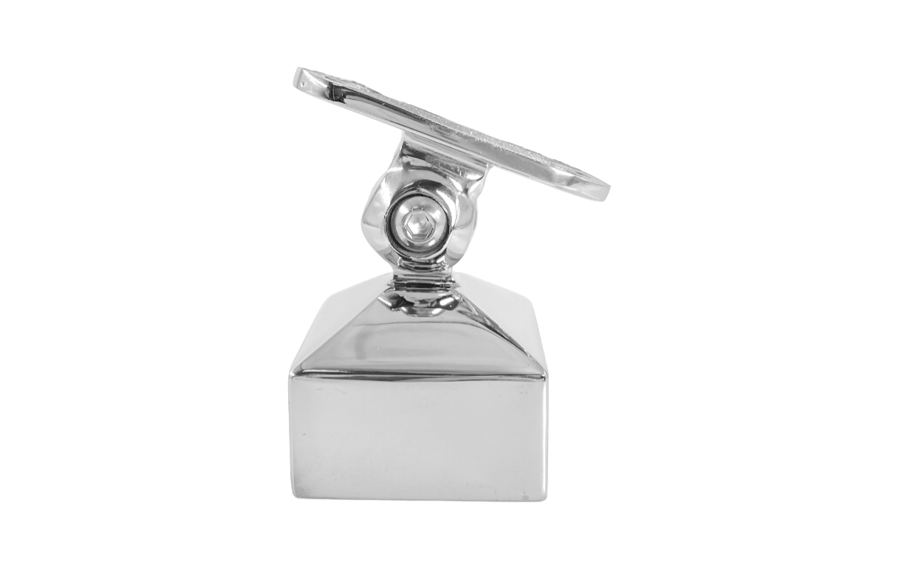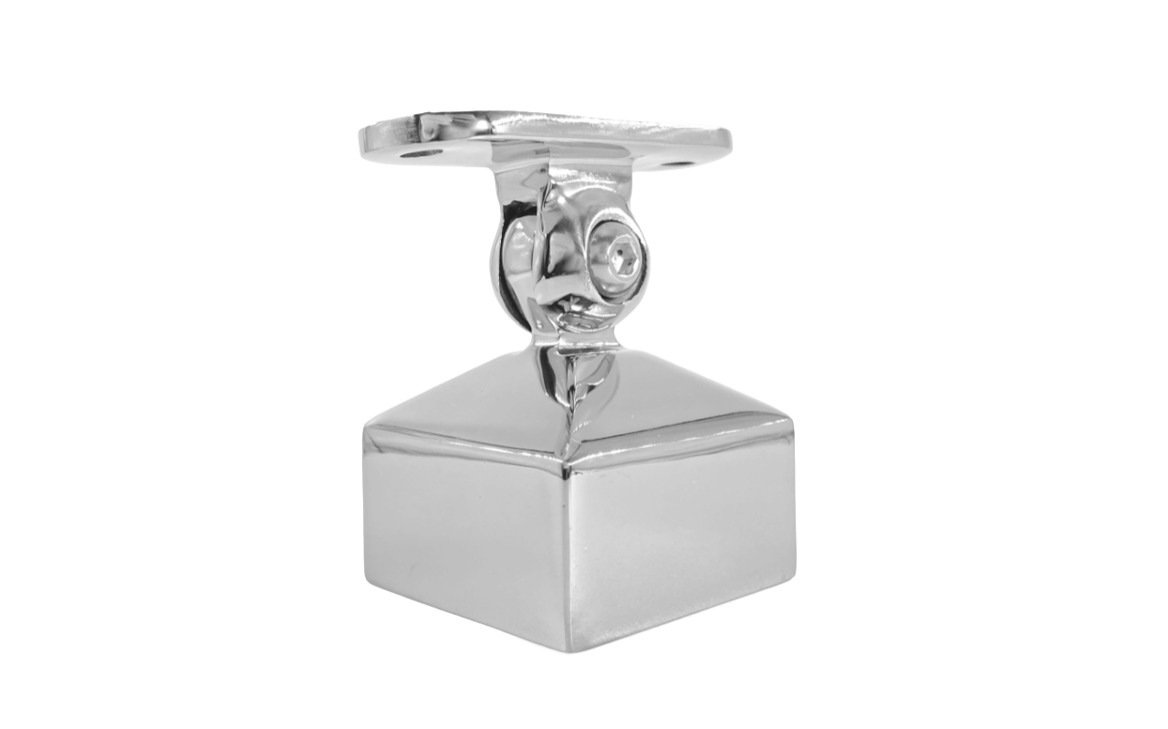 Наконечник на стойку 40х40, с ложе под ПЛОСКОСТЬ. Деталь с регулируемым ложементом, что позволяет монтировать её как и на горизонтальных площадках, так на лестничных маршах.