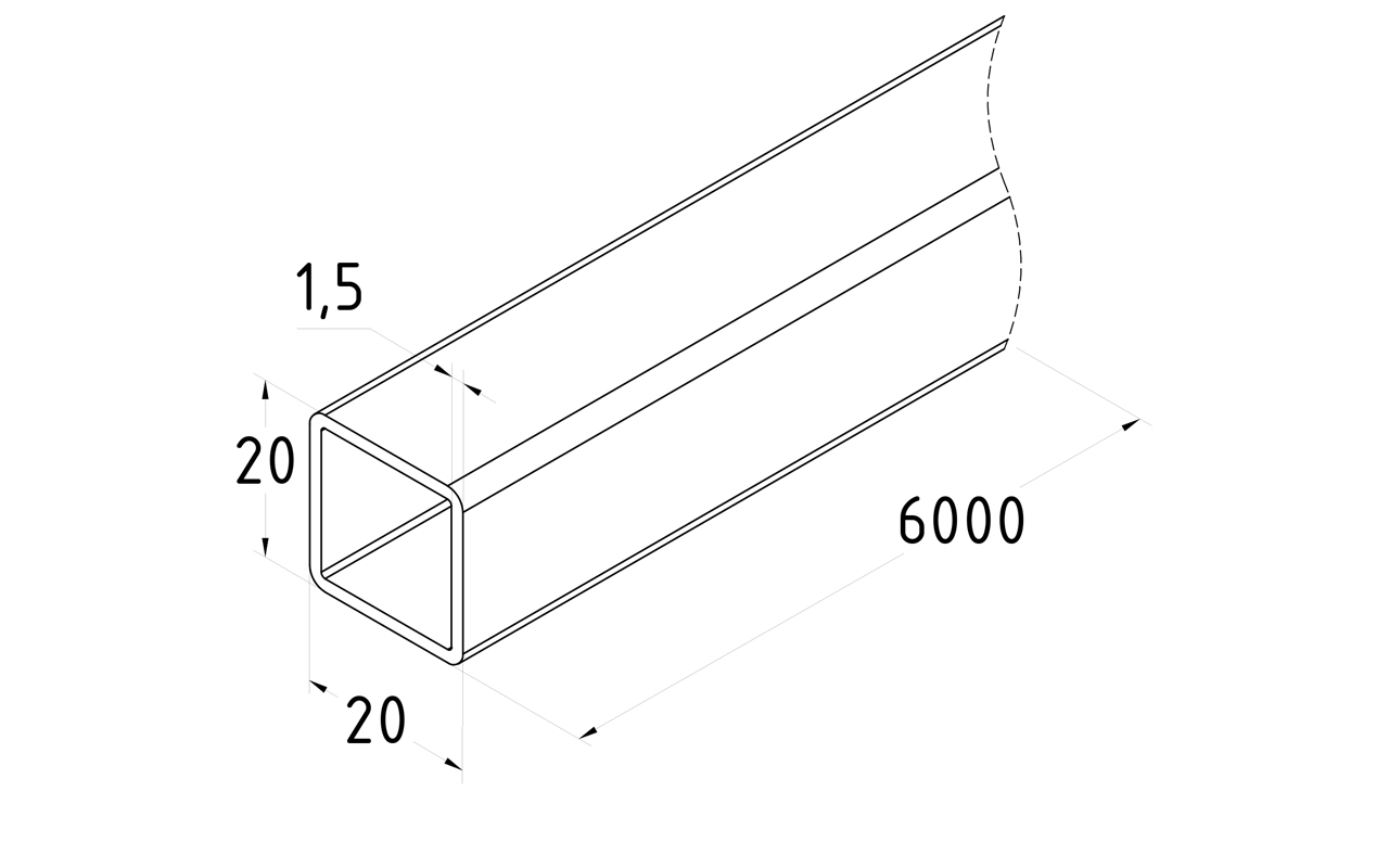 Труба нержавеющая AISI201, 20х20x1.5х6000, полированная k873-2