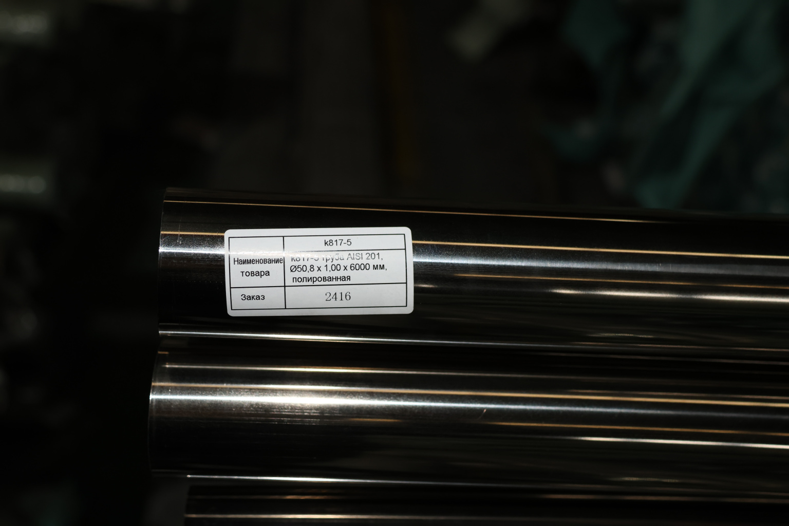 Труба марки стали AISI 201, диаметр 50,8 х 1.00 х 6000 мм, полированная