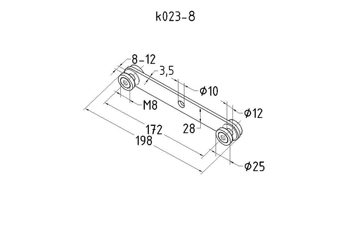 Пластиночный стеклодержатель с резьбой М8 — крепёжный элемент для фиксации стёкол толщиной от 6 до 12 мм.