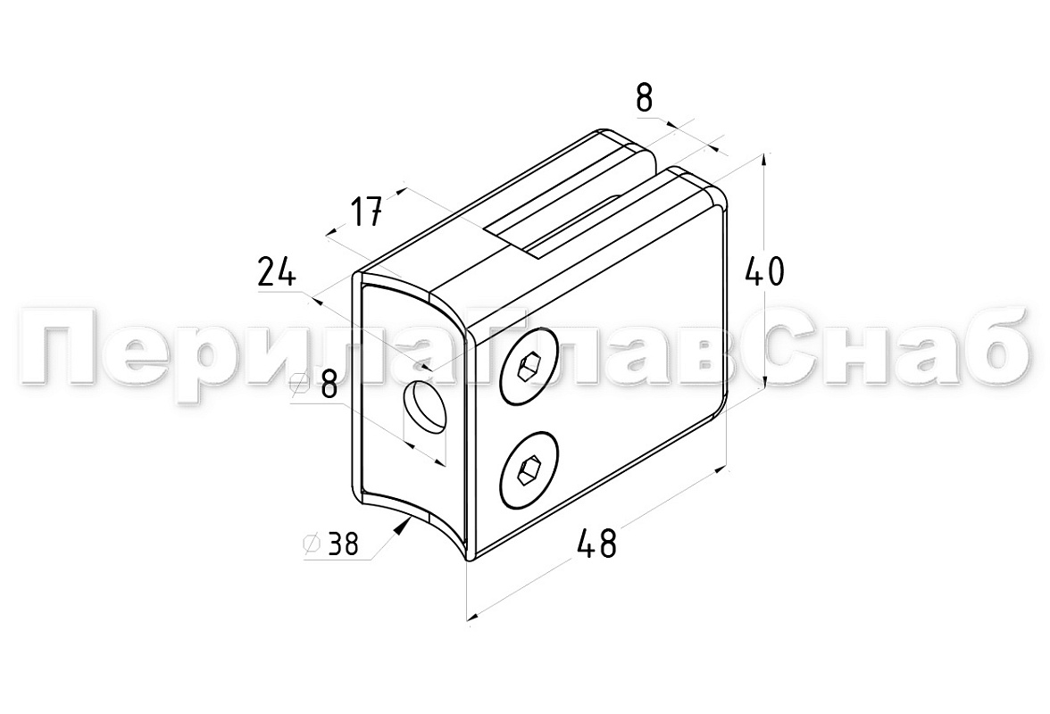 Стеклодержатель штампованный под стекло 8 мм (4+4 мм), под стойку Ø38.1 мм 40х24х55, полированный (AISI 304) k038 купить в Челябинске