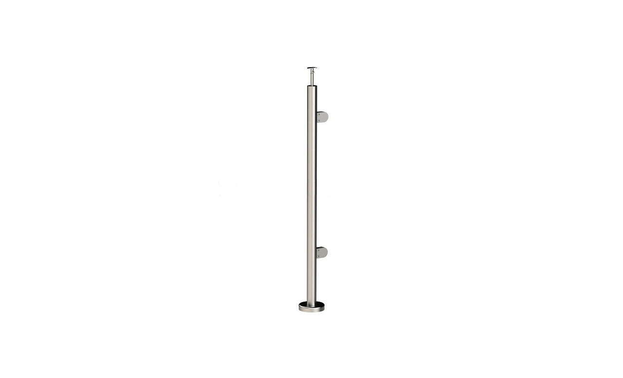 Стойка круглая Ø38.1: 2 штамп. зажимных стеклодержателя, полированная, высота 950 мм (AISI 201) k726-L