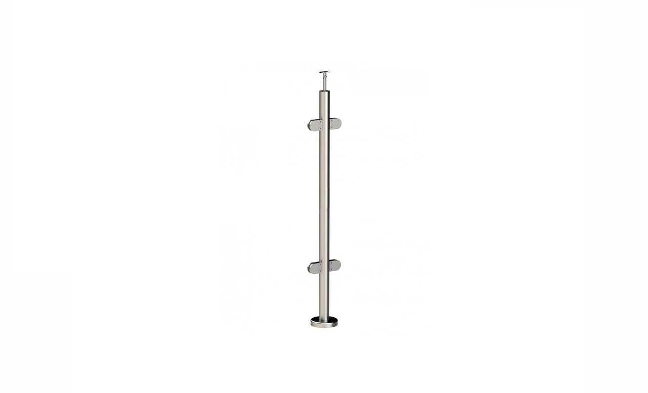 Стойка круглая Ø38.1: 2 штамп. зажимных стеклодержателя, полированная, высота 950 мм (AISI 201) k726-R купить в Челябинске