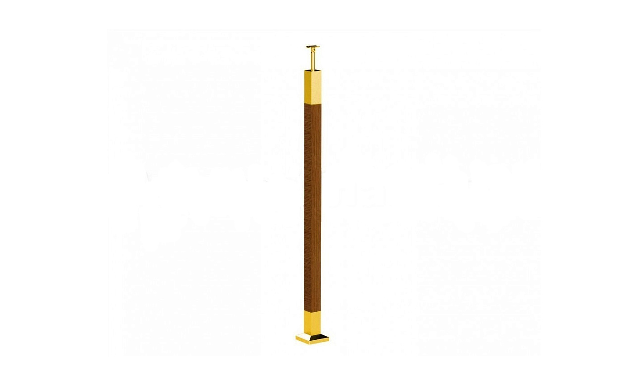 Готовая стойка Ø38,1х950 мм деревянная, со вставками из нержавеющей стали под золото 2х100 мм базовая k741-G купить в Челябинске