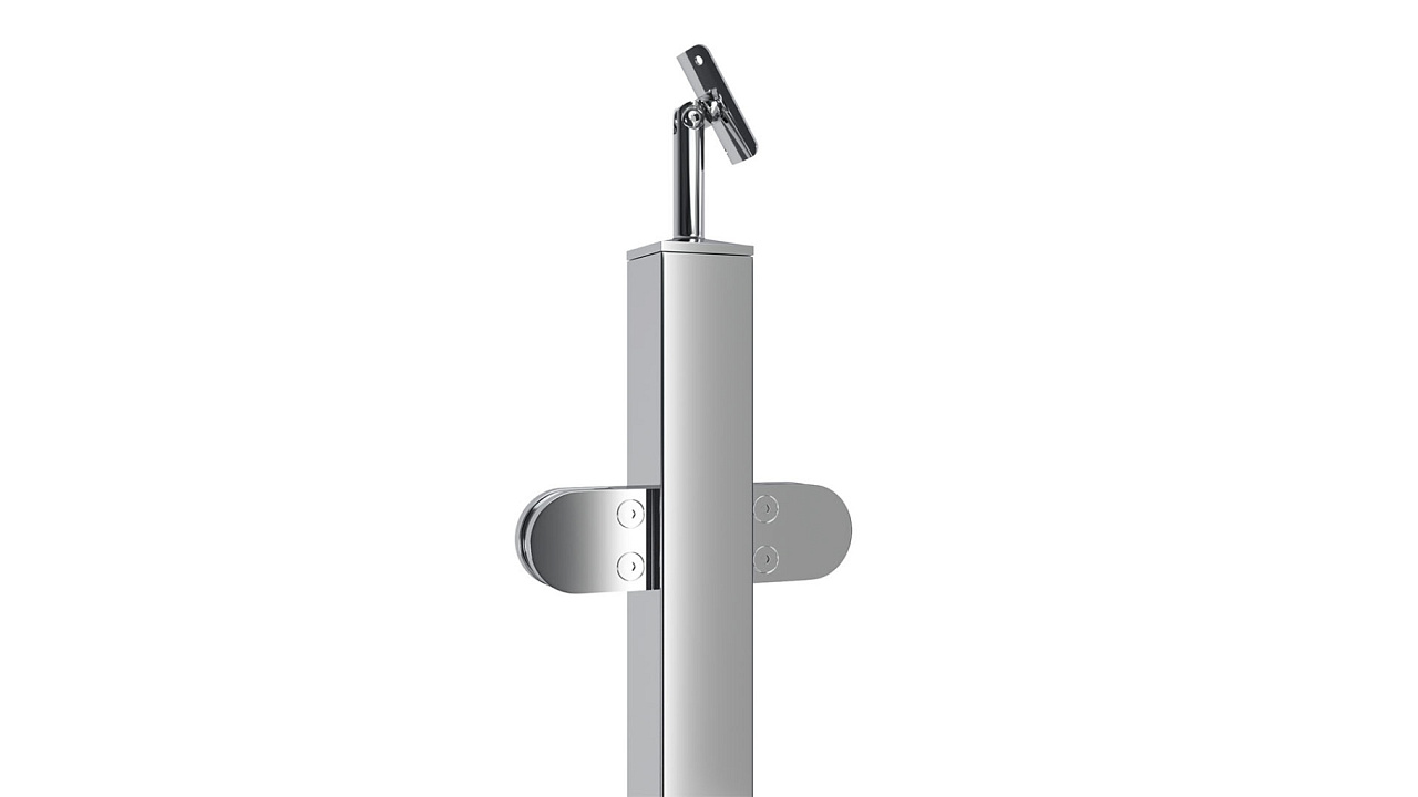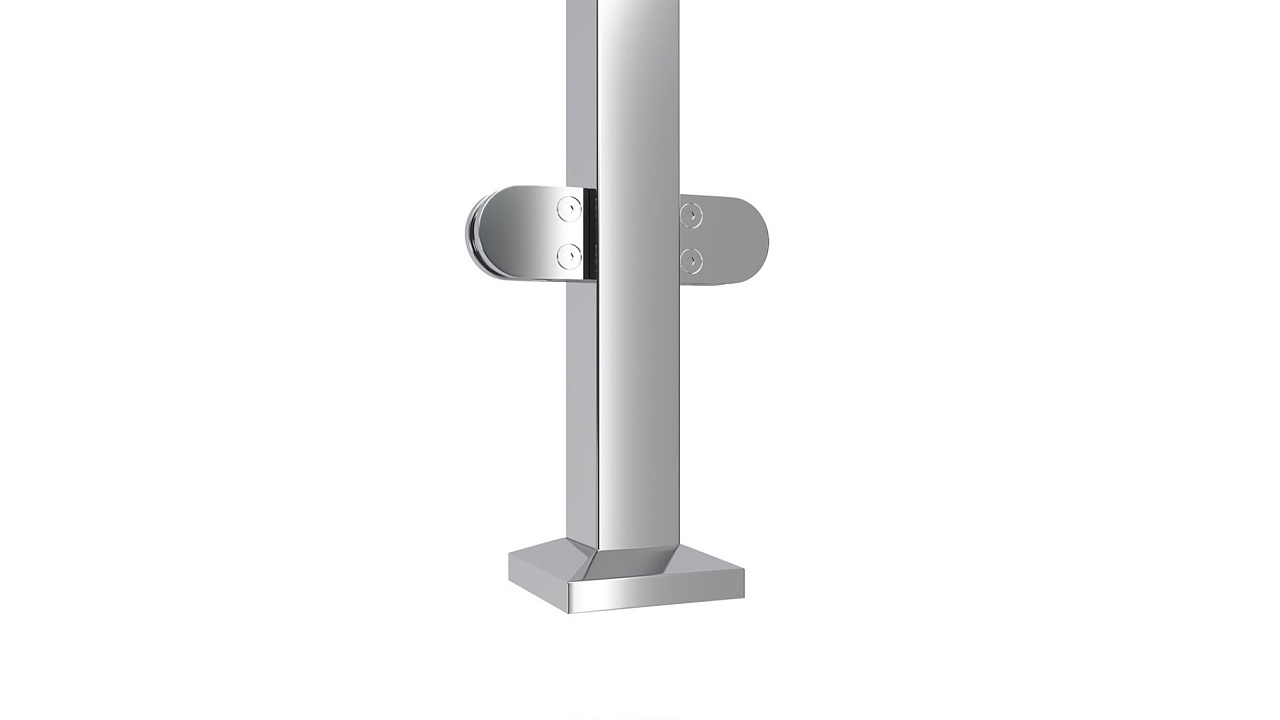 Стойка квадратная 40х40: 4 литых стеклодержателя, шлифованная, высота 950 мм, марка стали- AISI 304