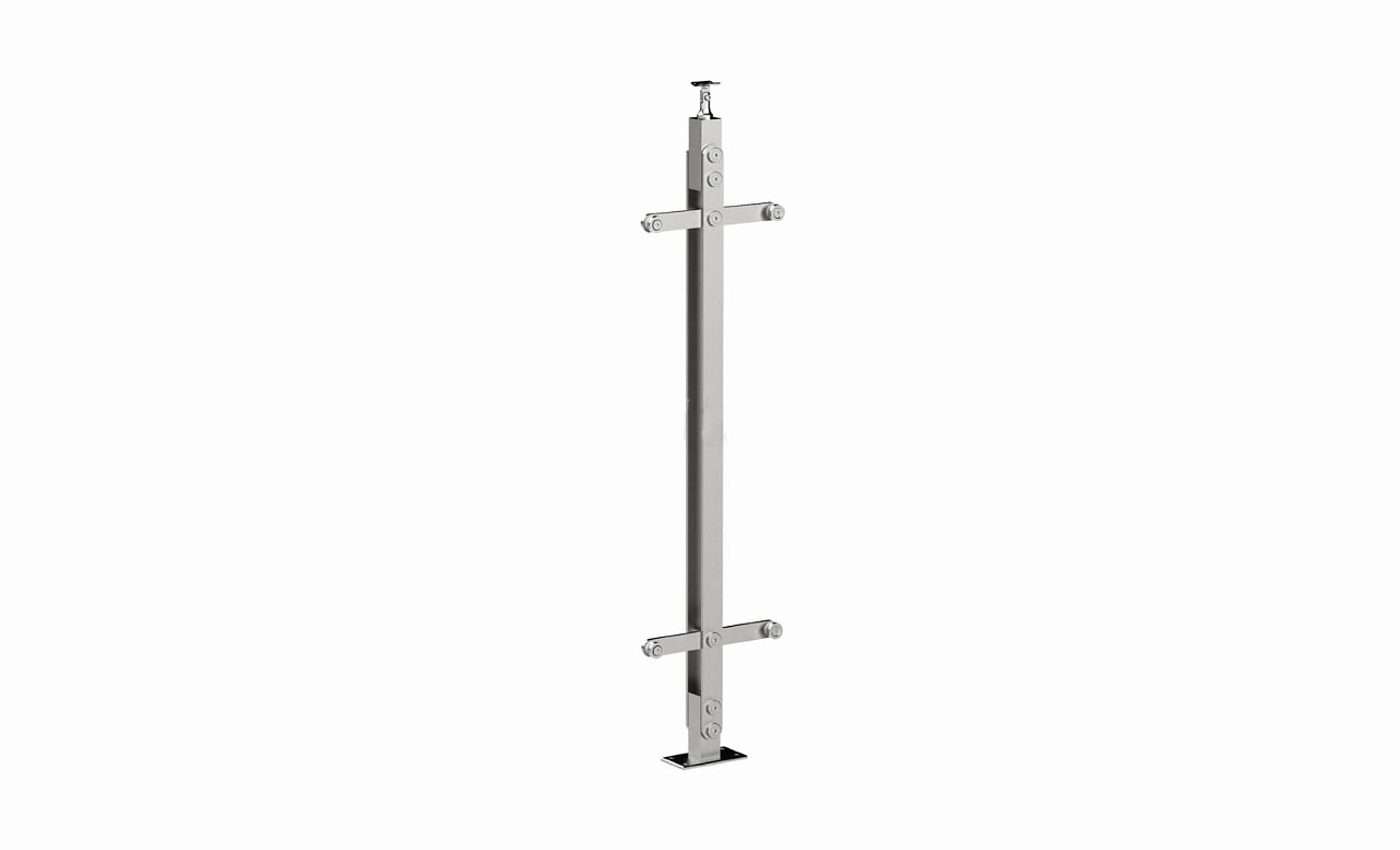 Стойка квадратная 40х40: 4 литых стеклодержателя, полированная, высота 950 мм (AISI 304) k746 купить в Челябинске