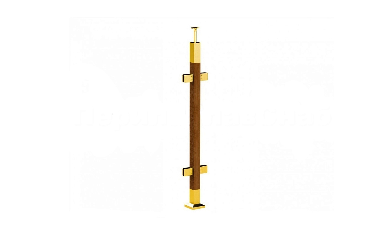 Готовая стойка 40х40х950 мм, деревянная, со вставками из нержавеющей стали 2х100 мм с 2 зажимными стеклодержателями, под золото k740-4-L-G купить в Челябинске