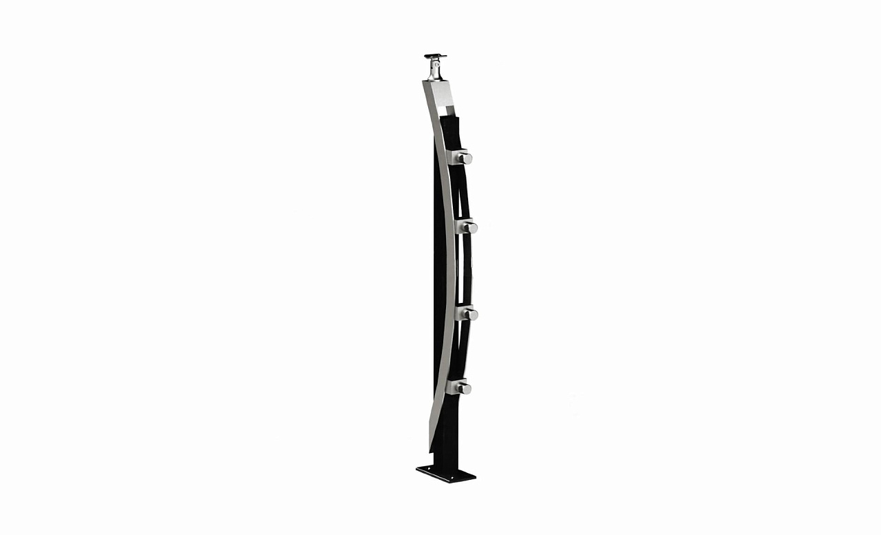 Готовая стойка Ø38,1х950 мм деревянная, со вставками из нержавеющей стали 2х100 мм с 4 стеклодержателями k741-3 купить в Челябинске