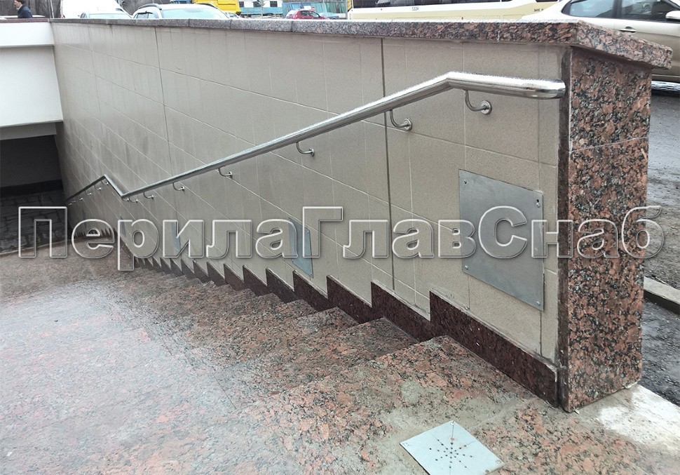 В качестве поручня была использована труба с диаметром 50 мм. Поручни завязаны на переходе, для непрерывности скольжения руки. Специальная труба для поручней и ограждений изготовлена из устойчивой к коррозии марки стали (специальная рецептура от ПерилаГлавСнаб). Идеальная полировка также продлевает срок жизни ограждений в разы.