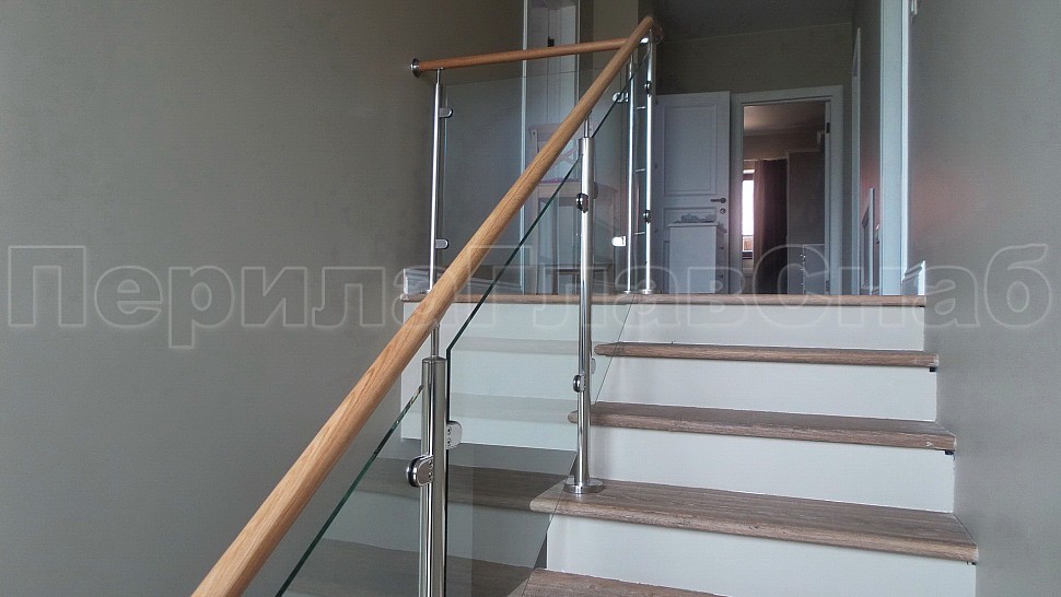 ограждения из стекла. Стеклянные ограждения с деревянным поручнем изящно
