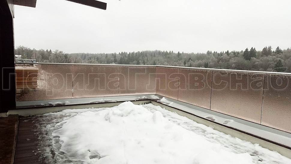 В загородном доме было установлено балконное ограждение из полированной нержавеющей стали марки AISI304. Сверху в алюминиевый профиль вставляется прозрачное закаленное стекло шириной 12мм , сам профиль крепится в парапет на фланцах. Сверху на стекло крепится поручень с пазом диаметром 42мм из нержавеющей стали марки AISI 304, поручень уходит в стену через фланец. Крепление между собой нержавеющих элементов ограждения произведено точечной аргонно-дуговой сваркой, длина швов 2мм, в последствие зачищены и отполированы. Данное ограждение эстетично вписывается в интерьер, и, самое главное, обеспечивает безопасное нахождение на балконе. Как видно на фото, сталь прошла проверку суровой погодой, и продолжит сохранять товарный вид в любые погодные условия.