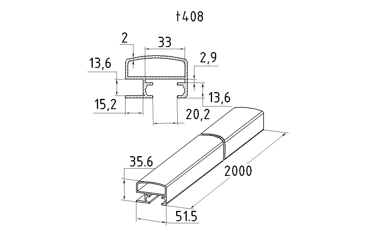 Трек для раздвижной системы на G-профиле, длина 2000мм t408