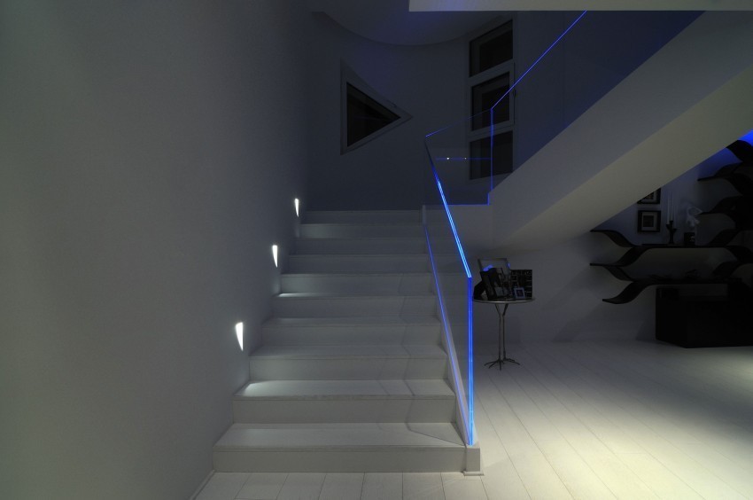 Для лестниц или помещений, где нет строгих требований по количеству света, использование подсветки поручня является эффективным способом экономии  электроэнергии. Посчитайте сами: любая, даже энергосберегающая лампа потребляет более 40 Вт, для освещения нужно как минимум 2 лампы, то есть 80 Вт, при этом 10-ти метровый поручень с подсветкой потребляет всего 50 Вт.