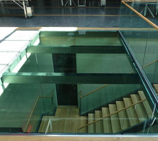 Стеклянное перекрытие из матового стекла на внутреннем балконе